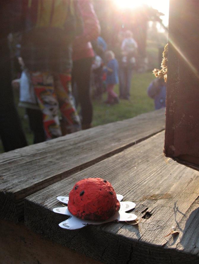 Jelikož byl nádherný slunečný den, sešli jsme se na dětském hřišti, kde si děti užívaly sluneční paprsky plnými doušky. Nastala čtvrtá hodina odpolední a průvod asi třiceti dětí s rodiči vyrazil směrem k naší faře. Děti se opravdu těšily, až se shledají opět se svými broučky, které uložily na podzim k zimnímu spánku. Když jsme došli na místní faru, přišly tři sudičky, které celou zimu chránily broučky, aby se zase mohli shledat se svými dětmi. Děti se sudiček nejdříve bály, ale pak poznaly, že jsou hodné. Dětičky sudičkám zazpívaly, řekly básničku a dostaly za to zpět svého broučka a sladkou odměnu.