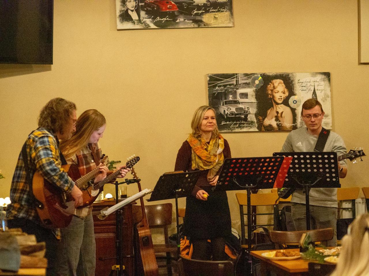 Po rozsvícení stromu se oslavy přesunuly do Hostince U Tesařů, kde proběhlo předvánoční sousedské posezení a kde kapela REZEKVÍTEK pokračovala ve svém hudebním programu. Toto živé hudební vystoupení příjemně doplnilo pohodovou atmosféru setkání.